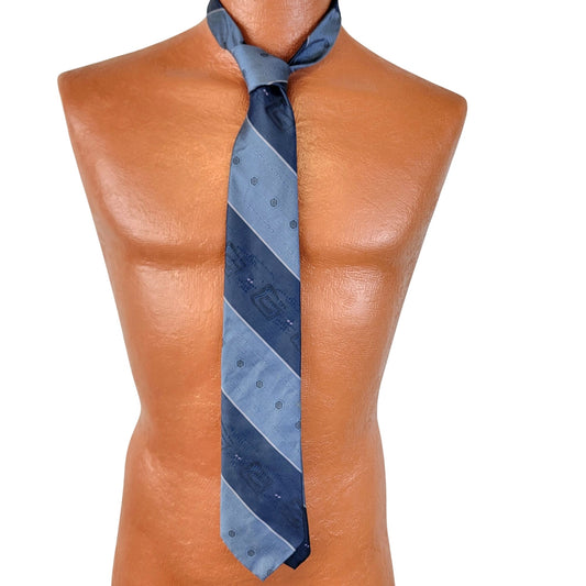 Vintage 70s Blue Silk Neck Tie Men Accessories Geometric Embroidered Formal Work