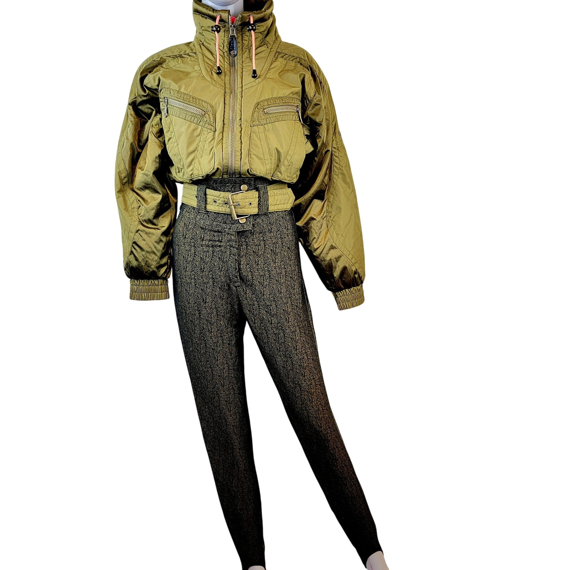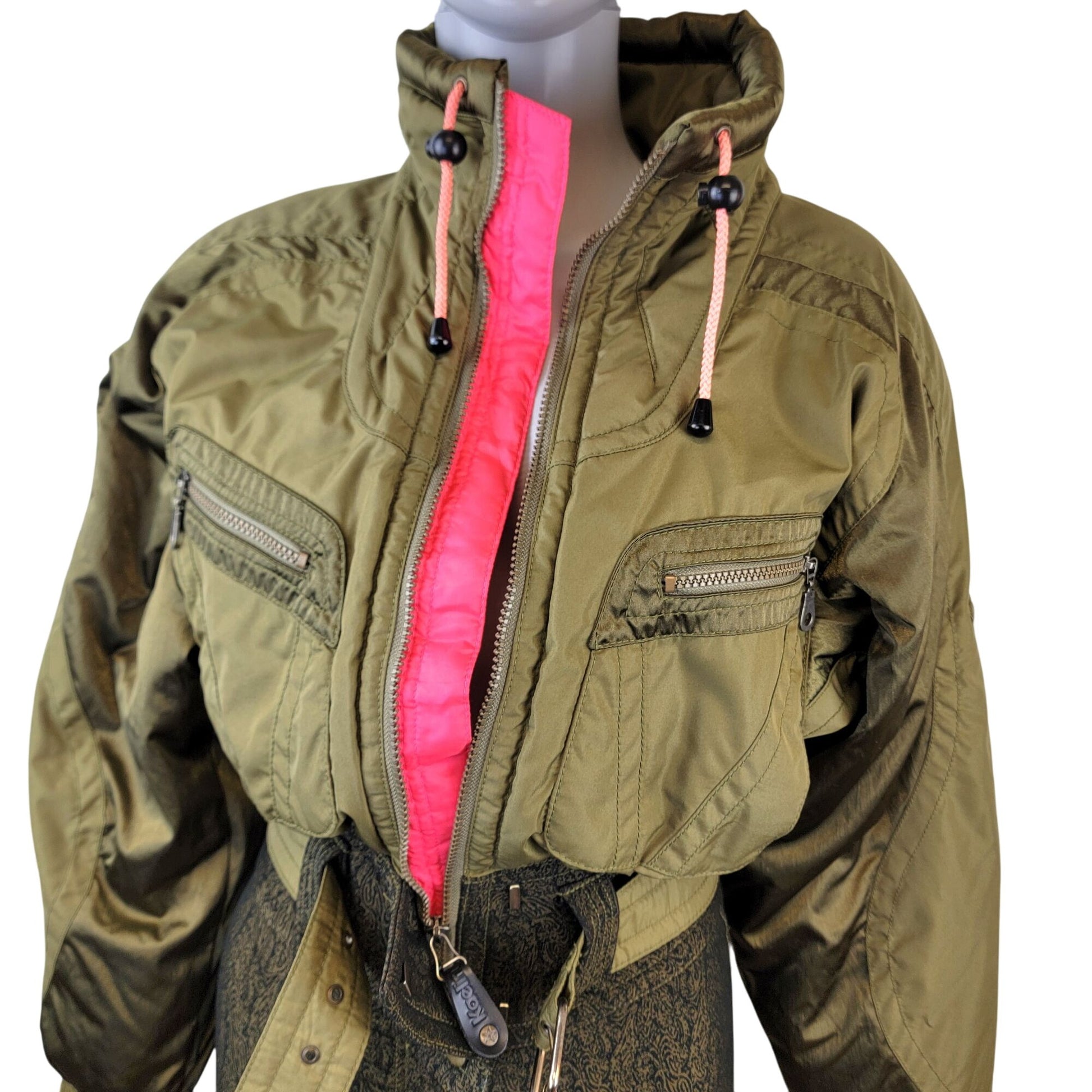Kaelin Vintage 90s Ski Snow Suit Women Size 6 Small Olive Green Brown One Piece