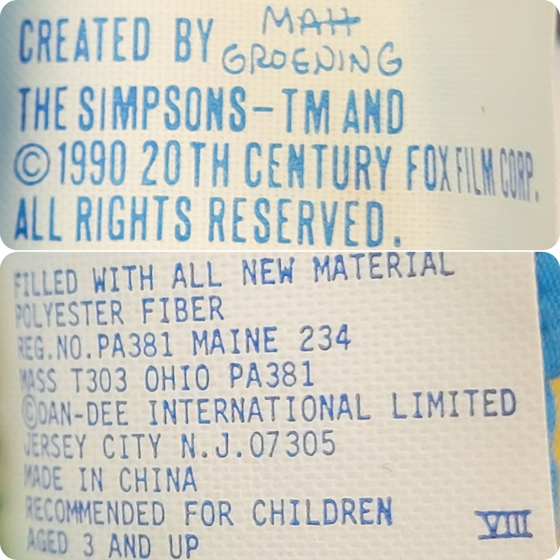 THE SIMPSONS Vintage 1990 Bart Simpson Rag Doll