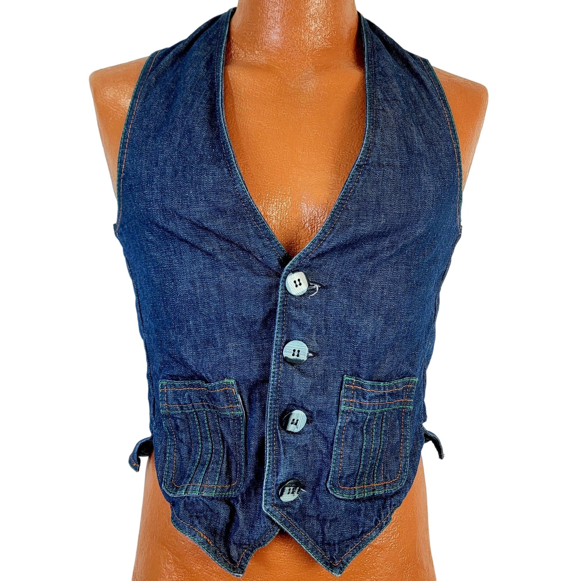 Vintage 70s Denim Vest Women Small Men 38 Button Up Jacket Top Retro 4 6 Fall S